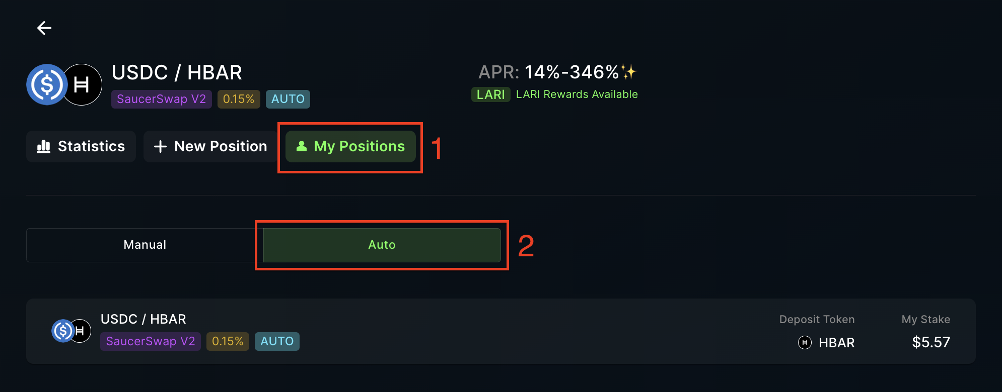 - To access Auto Pool positions from the “Liquidity” page, follow these steps: